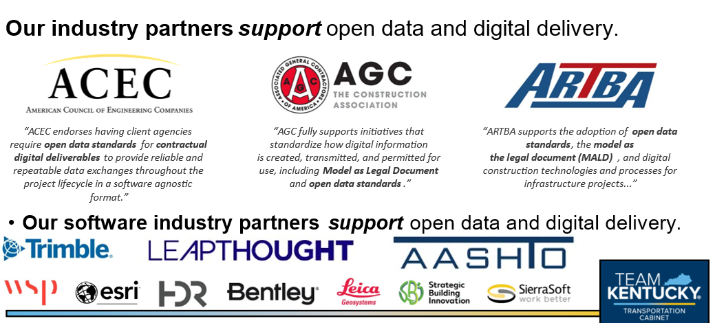 Digital Project Delivery (DPD) at the Kentucky Transportation Cabinet is the comprehensive management of our transportation network through the focused delivery of projects utilizing digital data and 3D modeling to create a centralized living representation of our network and its assets. This is housed in a common data environment that can be read, used, and contributed to by all elements of the project development and preservation processes. It offers data users more efficient and intuitive information exchange throughout an asset’s lifecycle.
